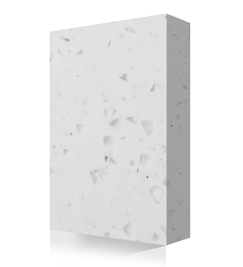 Avonite Surfaces® propose une gamme complète de coloris d’inspiration naturelle pour complimenter tous les goûts. Des nuances froides aux tons chauds neutres, cette gamme ajoutera une teinte naturelle à tout type d’environnement. GALACTIC ICE a une connotation froide, comme son nom l’indique. Rempli de petits « glaçons », copeaux transparents de tailles variables, de minuscules particules d’un noir profond, tous nageant tous dans une piscine d’une teinte blanche et fraîche. Cette texture visuelle naturelle créée une esthétique accueillante dans toute sorte d’espace. Les coloris de palette Avonite Surfaces® sont disponibles dans le programme RIGHT SIZE® avec des largeurs atteignant 60 in. (1524 mm), des longueurs atteignant 204 in. (5181,6 mm) et des épaisseurs proposées de 12 mm, à 3 mm. Propre. Élégance dans toute sa simplicité.